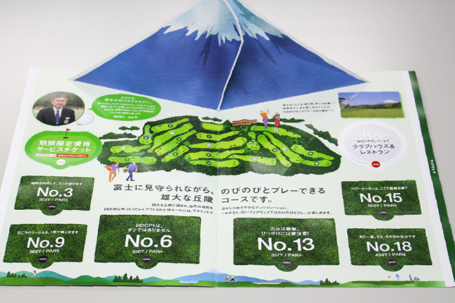 オファーに加えて、めくる仕掛けを利用してゴルフコースの魅力を伝えたDM企画が、ターゲットの興味喚起に繋がり、誘客に成功しました。DMを開いた際に、富士山のイラストが目の前に飛び出してくる仕掛けを設けました。飛び出した富士山の下には、当ゴルフ場コースを配置することで、“富士の麓にあるゴルフ場”であることを印象強く表現しました。