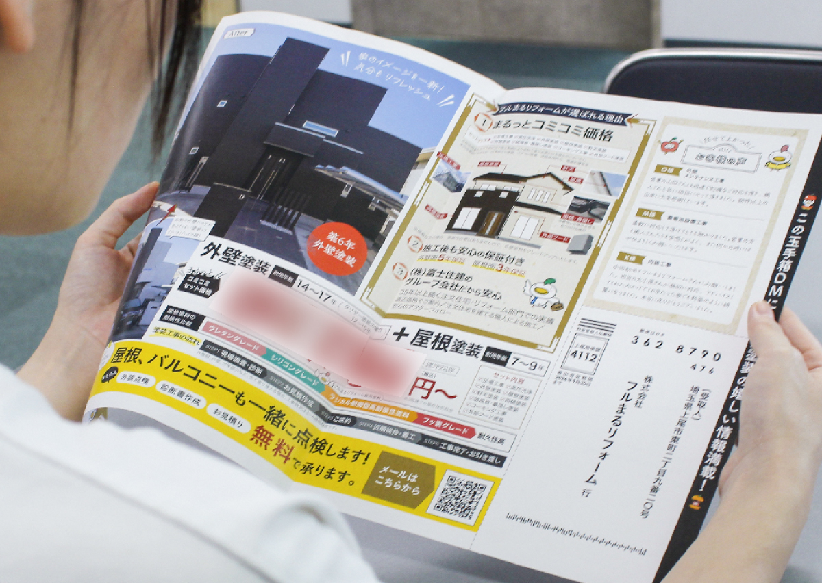 DM内に無料点検用の返信はがきを組み込み、受取人が即座にアクションできる設計を実現。 キャラクターや価格を大きく提示することで開封ハードルを下げ、訴求ポイントを押さえたデザインで顧客の行動を促しました。 結果、従来のDMより高い返信率を達成し、リフォーム依頼や見積もり、契約数の増加に直結。DMを保管していただけるお客様も多く、アウトバウンド営業からの問合せも増加。 成果に直結する仕組みを組み込むことで、投資対効果を最大化しています。
