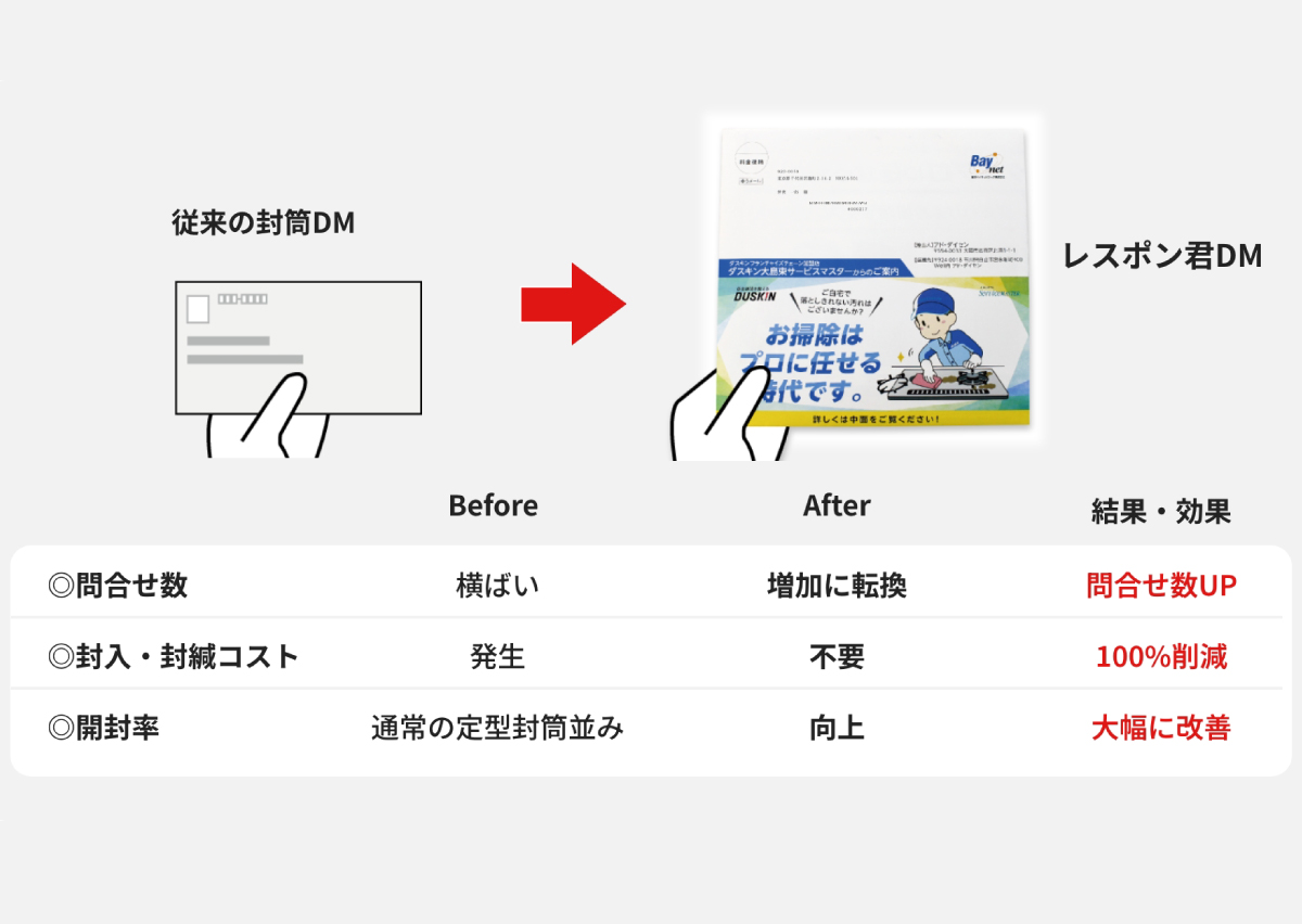 正方形DMで開封率・問合せ数UP!封筒コスト削減と訴求力強化を両立したハウスクリーニング事例